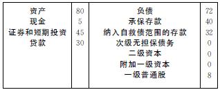 如果该银行贷款损失20亿元,那么自救债核销损失过程如下:8亿元的一级普通股、2亿元的附加一级资本、5亿元的二级资本和10亿元次级无担保债务中的5亿元用于核销20亿元的损失;如果该银行继续经营预计需要8亿元的一级普通股,则所剩5亿元的次级无担保债务和35亿元纳入自救债范围的存款中的3亿元转为一级普通股。