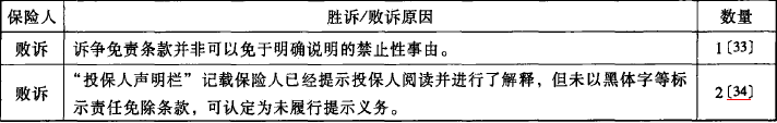 [14] 案例来自于北大法宝、中国裁判文书网以及法官提供的相关资料。部分涉及明确说明义务的案由并非保险合同纠纷,而是交通事故责任纠纷等。另外,本文所称败诉与胜诉仅针对明确说明义务的诉争部分。