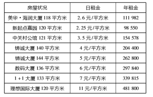表1:安居客中关村写字楼租赁报价情况表[11]