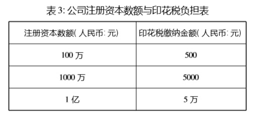 其一,税收规制可以限制股东随意承诺。按照现有税法安排,股东设立公司需要缴纳印花税,而且,印花税是按照注册资本万分之五的比例缴纳。如果股东设计天价注册资本,则其同样需要承担天价印花税。这导致其会自行约束设立注册资本过高的公司(参见下表),可见,税法中的义务安排对股东出资契约构成一种事实上的约束,理论界所担心的天价公司未必一定会产生。