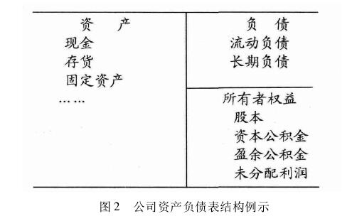 当公司成立以后,如果业务发展顺利,盈利颇丰,公司可能在分红后还留存了部分公积金用于扩大经营,甚至还通过举债快速扩张。由此带来公司资本结构的复杂化,如下面这张简化版的公司资产负债表所显示(见下图 2)。