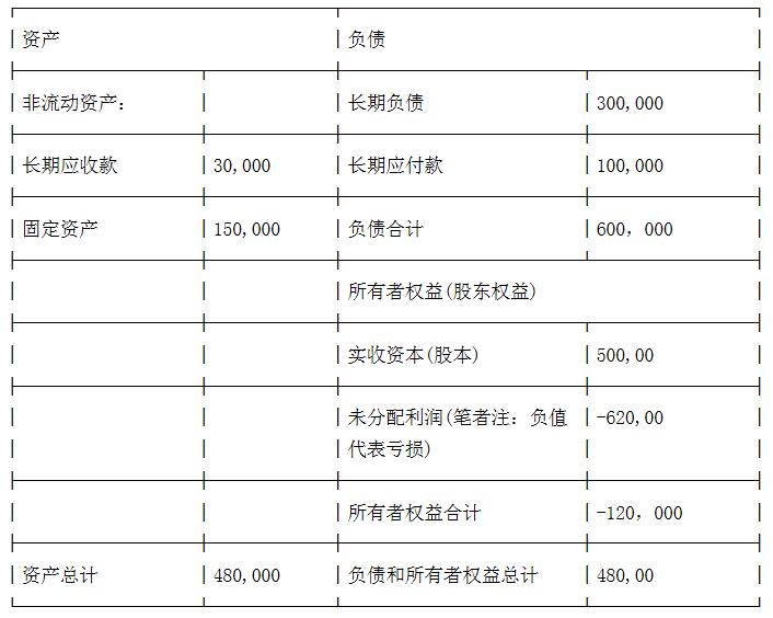 情形二:假如A公司进行了大量固定资产投资,所呈资产负债表如表3,则在长期负债中的一笔(对丁负债10万元)于2016年6月30日到期之时,按照衡平偿付不能测试,尽管公司有大量非流动资产(不能及时变现),且处于盈利状态,但流动资产不足以偿还戊的债务,构成偿付不能;按照资产负债表测试,公司总资产大于总负债,不构成偿付不能。