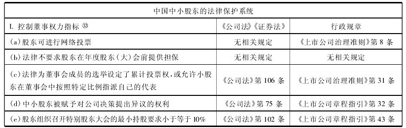 [34] See K. Pistor, M. Raiser & S. Gelfer, Law and Finance in Transition Economy, 8 Economics of Transition 325(2000). 这里没有包含“控制董事权力”与“控制控股股东权力”指标之间重合的内容。