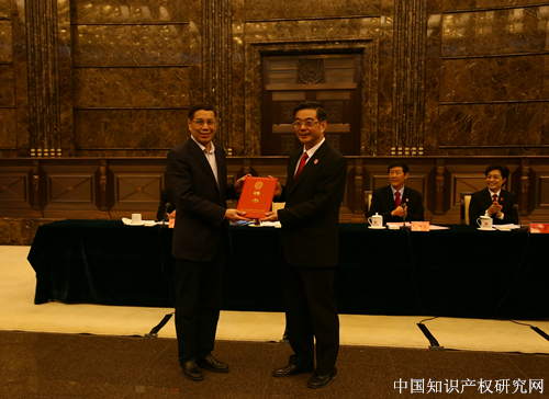 最高人民法院院长周强为知识产权司法保护研究中心揭牌,并为研究中心首届学术委员会委员、研究员颁发了聘书。在随后的讲话中,他强调要积极把握经济新常态下知识产权司法保护的新特点新趋势,加强知识产权司法保护的理论研究和理论创新,以改革创新的精神推动我国知识产权司法保护理论体系不断发展,促进知识产权审判工作健康发展,为促进创新驱动发展战略实施和加快创新型国家建设提供有力的司法保障。