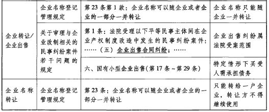另一个可能引入营业转让制度的途径,是改造企业名称转让制度。营业转让本身与企业名称转让有密切关系——营业转让面临的一个棘手问题是,需要协调转让人与受让人对商号的使用权,即转让人或者受让人是否能使用公司原有商号,以及在何种情况下可以使用该商号?这与企业名称转让交易所涉本质问题非常相似。在日本《商法典》中,其对营业转让的规制也是安排在“商号” 一章中,但日本《公司法法典》对“公司的商号”和“事业的转让”是分别规制的[64];在韩国《商法典》中,“商号”和“营业的转让”也是区分为两章[65]。但这两个国家的立法,在商号一章中,会涉及营业转让的规定,在营业转让的部分也会涉及商号的使用。可见,商号与营业转让之间有十分难以处理的关系。因此,我们也可透过改造企业名称制度的途径来实现营业转让制度的引入。当然,二者的差异在于:首先,营业转让未必一定附带商号之转移(受让人使用商号),在营业转让情形,受让人对商号之使用是附随权利/义务问题,而在企业名称转让情形,受让人对商号之使用是主要权利/义务问题;其次,营业转让与企业名称转让在转让人债务承担方面有不完全相同的安排。