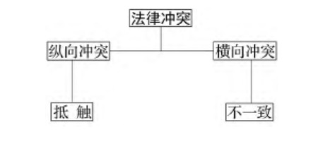正是站在这“普遍的意义上”,“法律冲突”也就是“法律规范冲突”,在国内法相关研究中,常指“立法打架”、“法律打架”、“法律撞车”现象。具体言之,专家学者们对“法律冲突”的界定立场比较一致,认为它既发生在纵向法规之间,也发生在横向法规之间;既包括“抵触”,也包括“不一致”。