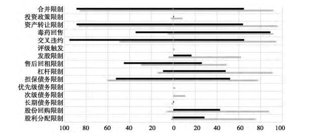 【10】限制性条款使用频率的差异性还反映在不同国家的债券市场之间,由于各债券市场分处不同发展阶段,公司融资法律制度环境也存在差异,市场主体对限制性条款的需求自然不同,限制性条款使用频率的分布反映出这种适应性张力。关于美国与欧洲国家部分限制性条款使用频率的数据统计,可参见:Lars Hornuf, Markus Reps,Stefan Schferling.Covenants in European Investment - Grade Corporate Bonds[J].Capital Markets Law Journal,2015,10(3):23.