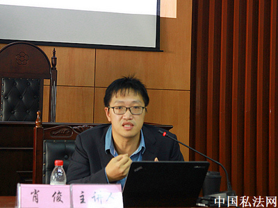 2017年10月21日上午,上海交通大学凯原法学院肖俊老师在我校文泰楼模拟法庭(三)进行讲座授课。本次讲座系“当代罗马法论坛”第一期,讲座主题为“私法的传承和生长——罗马法与中国民法教义学”。我院民商法系胡东海老师担任主持人,黄美玲老师、李俊老师、陈晓敏老师担任评议人。