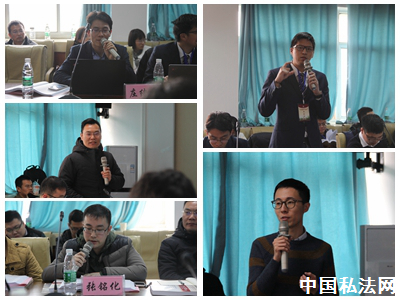 第三单元中,由六位博士对私法自治与股权处分行为、有限责任公司股权的善意取得、法院判决之物权变动效力、混合共同担保内部求偿算定规则、让与担保的习惯法规范路径等问题进行了学术探讨,由王辉律师、胡东海老师进行了评议,王辉律师对马明华博士和杨亚妹法官的论文内容给予了高度评价,胡东海老师更是对李付雷博士对实例的合理运用表示了赞许。