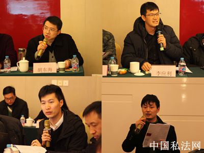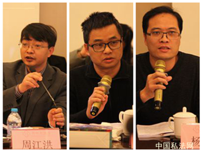 24号上午8点30,第二天的议程准时开始,今天的主题研讨分为两个部分,分别由方新军老师和朱广新老师主持。武汉大学法学院教授冉克平老师、上海财经大学法学院讲师李宇老师、四川大学法学院副教授张金海老师和我校法学院副教授唐义虎老师就转让财产所有权和使用权合同部分这一主题发表了意见;华中科技大学法学院教授姜战军老师、清华大学法学院副教授汪洋老师、福州大学法学院讲师潘运华老师和我校法学院讲师李俊老师就提供服务和完成工作成果合同部分进行了意见发表,在场的嘉宾学者们也积极参与了主题研讨。