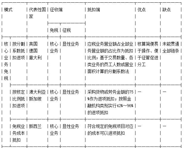 表1部分典型金融服务增值税课征规则的比较[43]