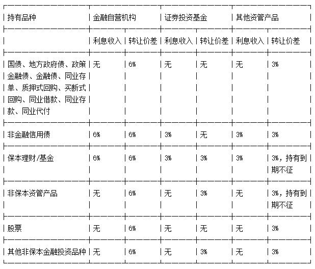 表3不同种类资管产品的增值税课征规则