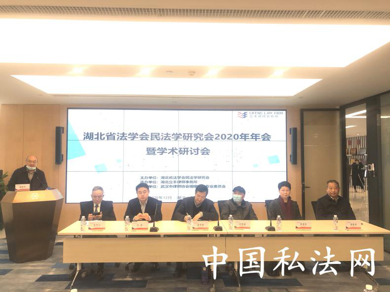 湖北省法学会民法学研究会2020年年会暨学术研讨会于2020年12月5日在武汉隆重举行。本次会议由湖北省法学会民法学研究会主办,湖北立丰律师事务所承办,武汉市律师协会婚姻家事专业委员会协办。来自武汉大学、中南财经政法大学、华中科技大学、华中师范大学、武汉理工大学、湖北省检察院、武汉海事法院以及湖北立丰律师事务所等单位的专家学者、实务工作者们参加了会议。因为疫情防控需要,本次会议采用线上直播与线下相结合的方式举行。会议围绕“民法典时代民法解释论问题”进行了深入研讨,取得了丰硕的成果。