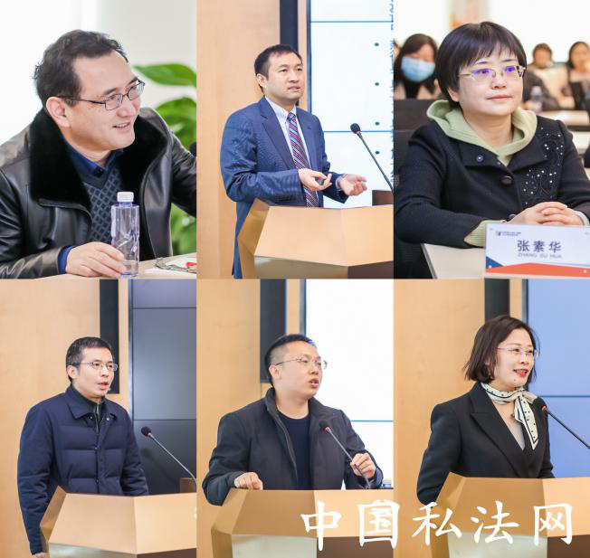 与谈环节,湖北省检察院周清华检察官、武汉海事法院审判委员会侯振坤委员、湖北省法学会民法学研究会副会长湖北立丰律师事务所张用江律师、湖北省法学会民法学研究会副会长武汉大学张善斌教授共同参与讨论,并就五位发言人的汇报提出看法和建议,从实务角度对报告进行了回应。湖北省检察院周清华检察官对非物质人格利益不合理使用的内涵和外延提出了自己的看法,并对《民法典》与单行法衔接时如何衡平当事人的利益表达了观点。武汉海事法院审判委员会侯振坤专职委员,对张素华教授的观点表示赞同,但认为实务中法官平衡当事人利益时更注重交易安全,认为对于民事行为的设立变更应采从旧原则,以体现公平性。对融资租赁问题,赞成夏老师的观点并提出了两个值得思考的问题。一是特殊动产登记应以登记所有人为准还是现实所有人为准,另外,挂靠经营情形银行设立抵押担保,抵押权人有无过分的注意义务。二是法院查封的财产不允许抵押,法院同意可以设定抵押,这里的“同意”可以对抗的主体有哪些。此外,对于刘丽律师的报告,侯振坤专职委员认为审判实践中不承认事实婚姻是由于无结婚证件,有些未领取结婚证但有证据证明如举办仪式,仍能认可其婚姻效力。张用江律师首先对姜战军教授提出的非物质人格利益的合理使用作出回应,并就合同效力的问题提出自己的看法。张善斌教授认为姜战军教授提出的合理使用不适宜扩张到名誉权问题,针对张素华教授的报告,张善斌教授认为法律行为内部可以作出类型化的区分,接着张善斌教授又对文杰教授报告中提到的居住权问题提出自己的看法和建议,另外,对于夏昊晗副教授提到的融资租赁担保化的问题,张教授认为这可能包含经济上的考虑。最后,对于刘丽律师提到的补办结婚登记行为的效力问题,张教授认为可以在司法实践中,可在实质正义和形式正义之间寻求平衡。