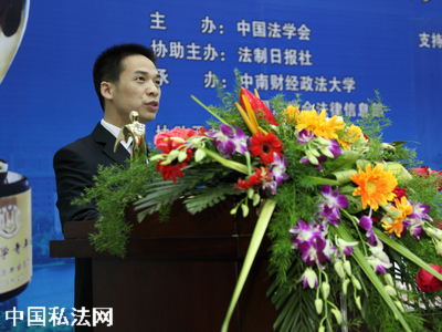 (中南财经政法大学法学院梁成意博士作为青年教师代表在开幕式上发言)