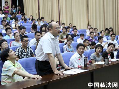 江必新大法官:其实不是第一次来,前几年办法官培训班的时候来过几次,当然这个方面确实有不称职的地方,我这个兼职教授是虚有其名啊,应该向大家做检讨。是这样,首先根据我们私法裁判基本理念,民事诉讼基本理念,叫不告不理,所以这个案件现在还没到我这儿来,还没有管辖权。这个问题因为我可以发表评论,但是因为我们法官职业道德上,这个可能成为一个案件,如果我事先发表评论,就可能影响下级法院的裁判,所以我在这里发表评论是不合适的,而且我希望各位在提问中不要提各案,这个是确实我们不好回答,谈了会使大家失望,谢谢。