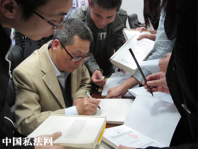 (梁慧星教授给学生签名)