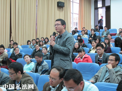 在提问互动环节,现场师生就陈教授所做讲座的有关内容提出了如“案例实证方法”、“法律的普适性和地方性”、“农村土地流转”等一系列问题,陈教授都一一给予耐心的解答。通过聆听陈小君教授的讲座,使大家对于中国民法学研究的转型问题有了更深入的了解和认识。本次讲座在同学们热烈的掌声中圆满结束。