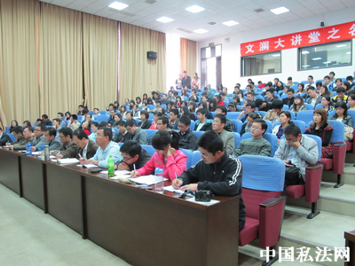 2011年11月21日下午14:00,由共青团中南财经政法大学委员会主办、中南财经政法大学研究生会承办的文澜大讲堂之名家讲坛第42期在文泓楼学术报告厅隆重开讲。本次讲座由中南财经政法大学副校长陈小君教授主讲,讲座主题为“中国民法学研究之转型论纲”。