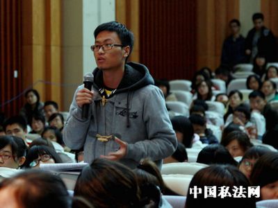 第二个来讲,就网络时代著作权保护的问题,其实,到今年六月份为止中国网民达到5.4亿,那么换句话说,我们互联网的点击率由3年前的34%提升到现在的35%。互联网发展的数目非常大,但现在最近两三年的发展步伐火爆,增加的网民数依然每年2000万到3000万的数字在不断增长,如果说我国互联网的点击率像美国、欧洲、日本、韩国达到60%甚至70%的话,中国互联网网民的人数每增长10个百分点,会拉动经济增长一到两个百分点,现在互联网产业可以说是机遇。但我们在互联网中产生的法律问题远远不止是著作权,可以说是著作权商标权,反不当竞争等传统的知识产权领域遇到新的挑战,产生的很多新的问题,需要我们进行讨论。同时像电子商务引发的合同问题、电子支付,还有虚拟游戏所带来的究竟是物权还是债权关系,对我们法律界带来一系列挑战,著作权只是其中表现最突出、最尖锐的问题,目前我认为互联网就是要注意著作权的创作者、传播者和使用者之间的关系,所以我们现在的法律必须有时代气息来反映互联网时代版权保护制度。我国《侵权责任法》第三十六条它规定了网络侵权主要是网络版权的保护,但即使如此,目前网络版权纠纷依然居高不下,据统计,全国去年知识产权案件,可以这么说,一成的案件是专利纠纷,两成的案件是商标纠纷,七成的案件是版权纠纷,而其中版权侵权的60%是网络版权纠纷。所以我想借用一下一个诗人的话,这是一个美好的时代,因为网络技术使地球变成了地球村,让信息的传播无比的快捷和方便,所以改变了我们的学习、生活、工作的方式和条件,这就是最好的时代。同时这是个最坏的时代,由于新技术的出现,使我们的法律不能及时反映新的问题,解决新的纠纷,所以传统的制度不复使用。说到这里,归结为一句话就是需要我们的同学、我们的老师要关注信息时代的法律问题,谢谢大家。 (掌声)