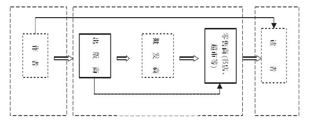 此外,即便转售价格维持影响出版商和书店,进而会影响到多样性,但仅仅从出版商和普通书店这两个角度来思考转售价格维持的问题,也存在重大的缺失。因为出版物的生产和销售涉及很多环节,而每个环节都对最终产品的多样性具有影响。从简化的产业链来看,出版产业包含三个主要部分:一是生产者,二是中间环节,三是最终消费者。出版商和零售商仅仅是中间环节的一部分。作为整个环节有机构成的作者、批发商和读者所面临的变化,对于多样性同样存在巨大的影响。产业链的基本构成如下图所示: