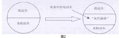 上述论断表明,二审法院“创造性地”认定“机动车”与“非机动车”这两个定义并非“非黑即白”的互斥关系,认定这两者中间还有因社会发展现实造成的灰色地带。[19]其实,《道交法》中,“机动车”与“非机动车”这对概念并不周延:该法条采用的乃是“对偶概念”的立法技术,即“最抽象的概念都只容许有两个——彼此处于矛盾对立关系的——导出概念,惟如是始能保障其所要求的圆满性”[20]。然而,“只要碰到‘既如此亦如此’及中间形式的情况,这种体系就让人沦于无法克服的困难中”[21]。显然,二审法院在面对《道交法》第119条时,遇到了些许困难。