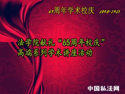今年是中南财经政法大学建校65周年,法学院秉承“简朴务实,学术为主”的校庆举办原则,计划于9月底到10月底开展为期一个月的系列学术讲座活动,以学术校庆的方式庆贺65周岁生日。