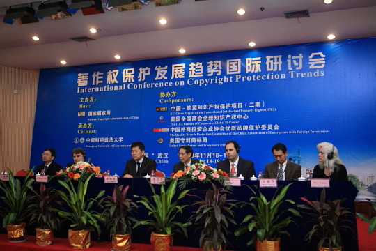 2009年11月18日,由中华人民共和国国家版权局主办,中国—欧盟知识产权保护项目(二期)、美国全国商会全球知识产权中心、中国外商投资企业协会优质品牌保护委员会、美国专利商标局协办,中南财经政法大学承办的“著作权保护发展趋势”国际研讨会在中南财经政法大学学术交流中心隆重开幕。