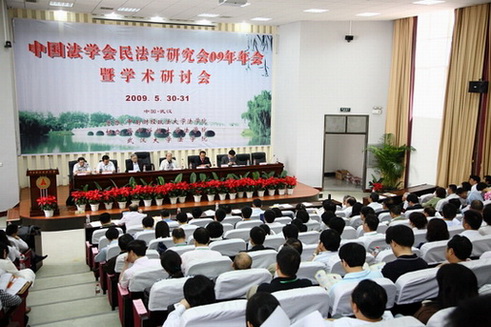 5月30日上午,中国法学会民法学研究会09年年会暨学术研讨会在我校文泓楼一楼报告厅隆重举行。本次年会由我校法学院承办,华中科技大学以及武汉大学法学院协办,来自全国各地约140多位从事民法理论研究、司法实践的学者专家出席了本次会议。