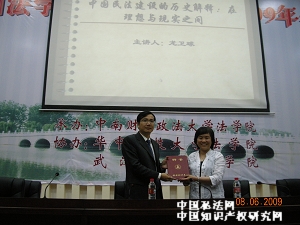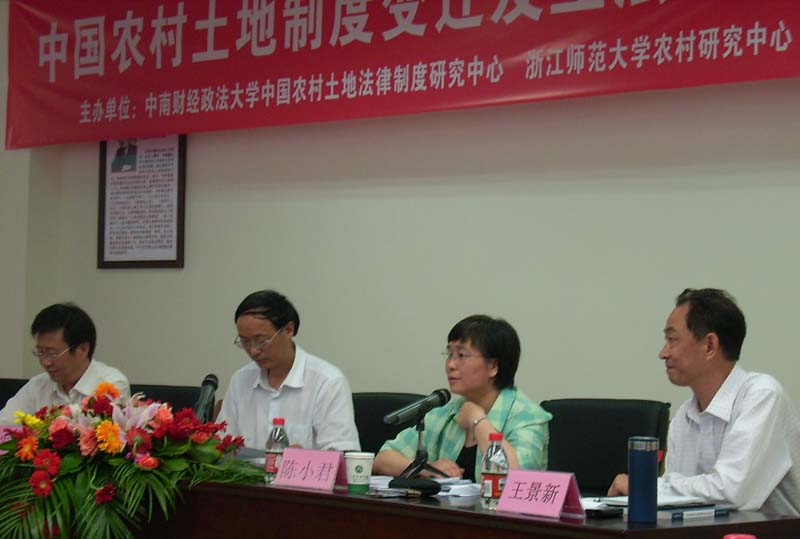 由华南师范大学法学院、《南风窗》杂志社联合主办的珠江法学论坛——“中国农地制度改革研讨会”于2009年3月12日在广州隆重举行。因研究农地法律制度成就卓著,中南财经政法大学副校长陈小君教授应邀参加此次盛会。与会代表还有秦晖教授、党国英研究员、李昌平理事、谭玲法官等来自中国社会科学院、清华大学、厦门大学、香港科技大学、香港城市大学、澳门大学、香港乐施会、广东省高级人民法院等科研、实务部门的专家学者40余人。