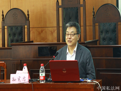 2018年6月10日上午,中国社科院法学研究所教授,博士生导师,第十二届全国人大代表,全国人大宪法与法律委员会、中国民法学常务副会长孙宪忠在我校文泰楼模拟法庭(二)进行了题为“当前中国民法典编纂中的几个问题”的讲座。我院张家勇教授担任主持人。