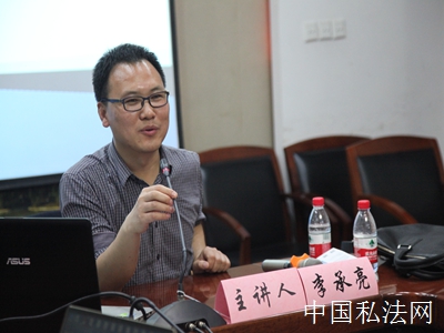 2018年4月21日晚7点,由中南财经政法大学法学院民商法学科和罗马法系研究中心主办的第十一期“南湖民法论坛”在文治楼六楼会议室成功举办。武汉大学法学院副教授李承亮老师作了主题为“恢复原状费用赔偿的性质”的报告,刘征峰老师担任本次论坛的主持人,张家勇老师、胡东海老师和李俊老师担任评议人。